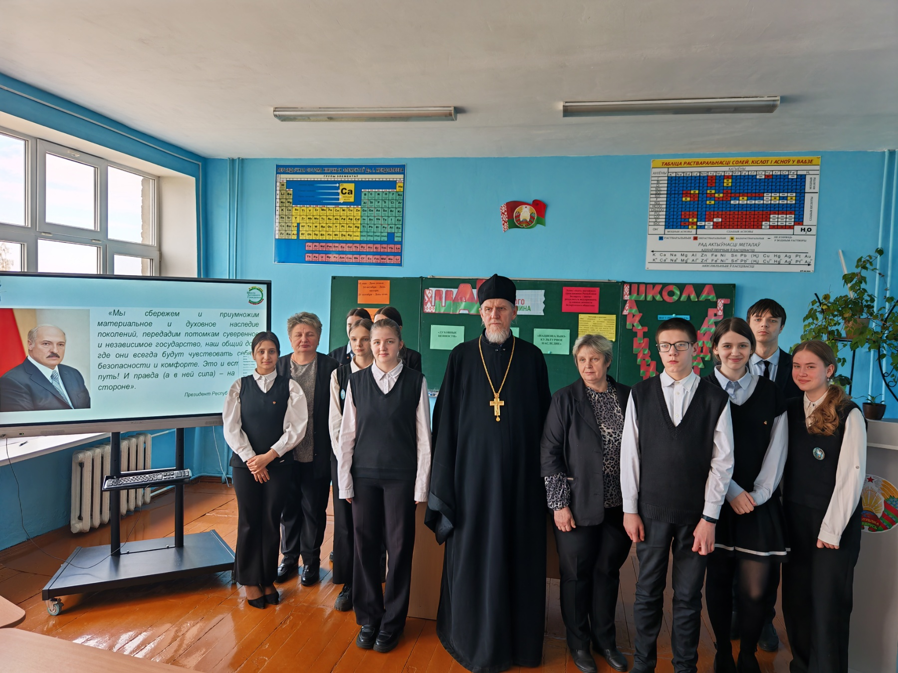 31 марта в рамках информационно-образовательного проекта ШАГ прошла встреча на тему: «Быть достойным гражданином Республики Беларусь – значит разделять и поддерживать духовные ценности белорусского общества». На мероприятие был приглашён протоиерей Свято-Троицкой церкви Анатолий Ежевский и Злотникова Алла Аркадьевна, библиотекарь ГУО "Деревновская базовая школа Слонимского района". В ходе открытого диалога участники обсудили духовно-нравственные ориентиры современной молодёжи.