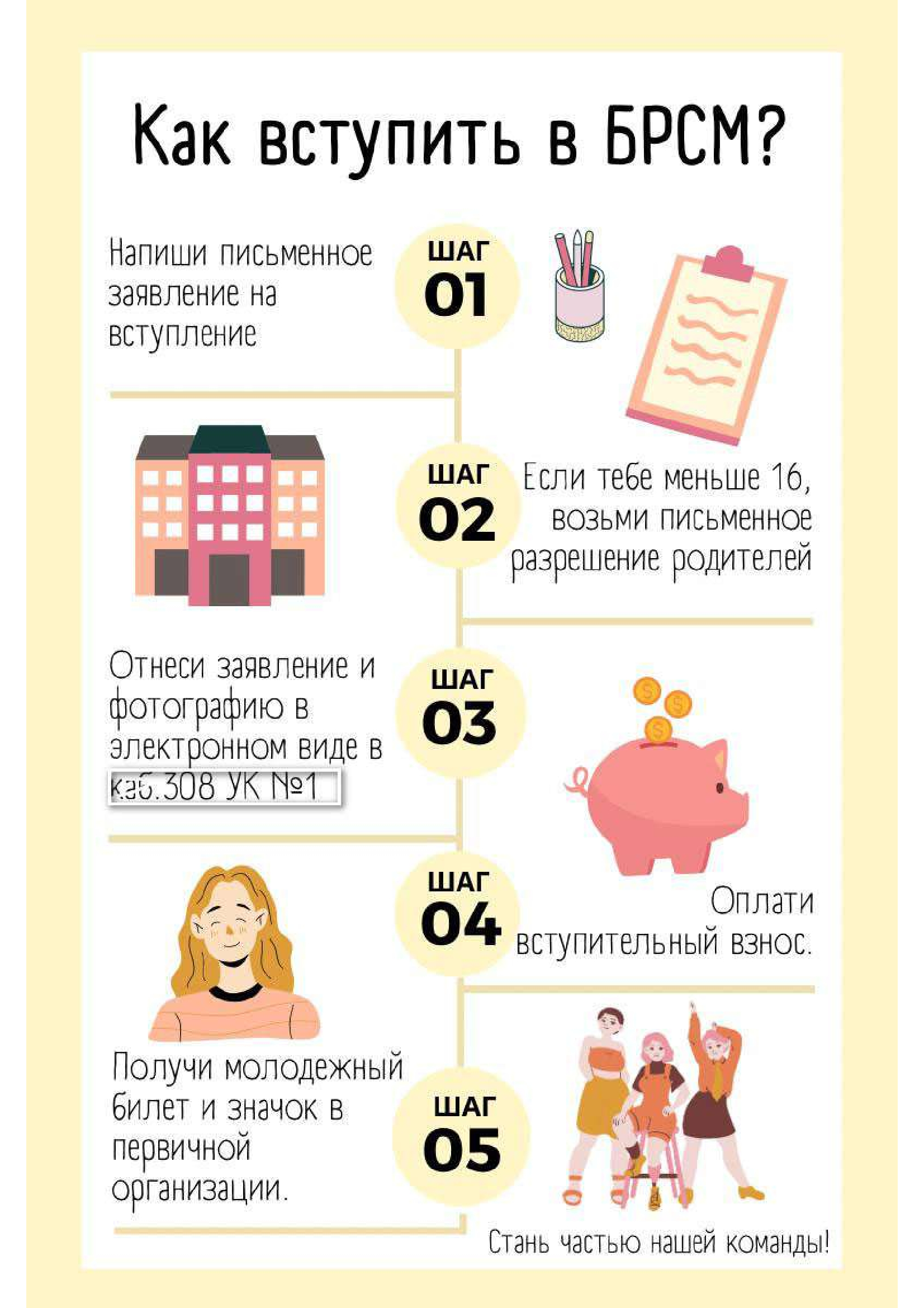 Членами организации являются учащиеся учреждения обра­зования от 7 до 17 лет, могут быть педагоги школы, представи­тели общественных организаций, родители, частные лица.