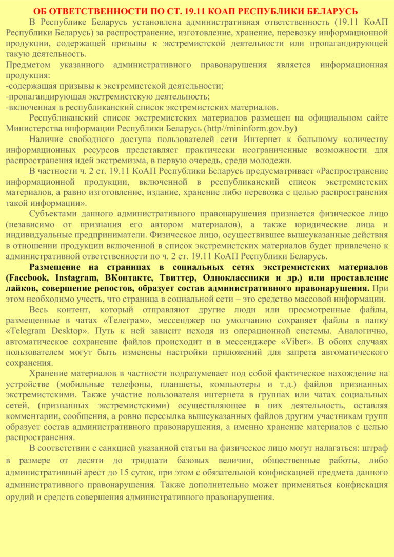 Статья 361. Призывы к действиям, направленным на причинение вреда национальной безопасности Республики Беларусь