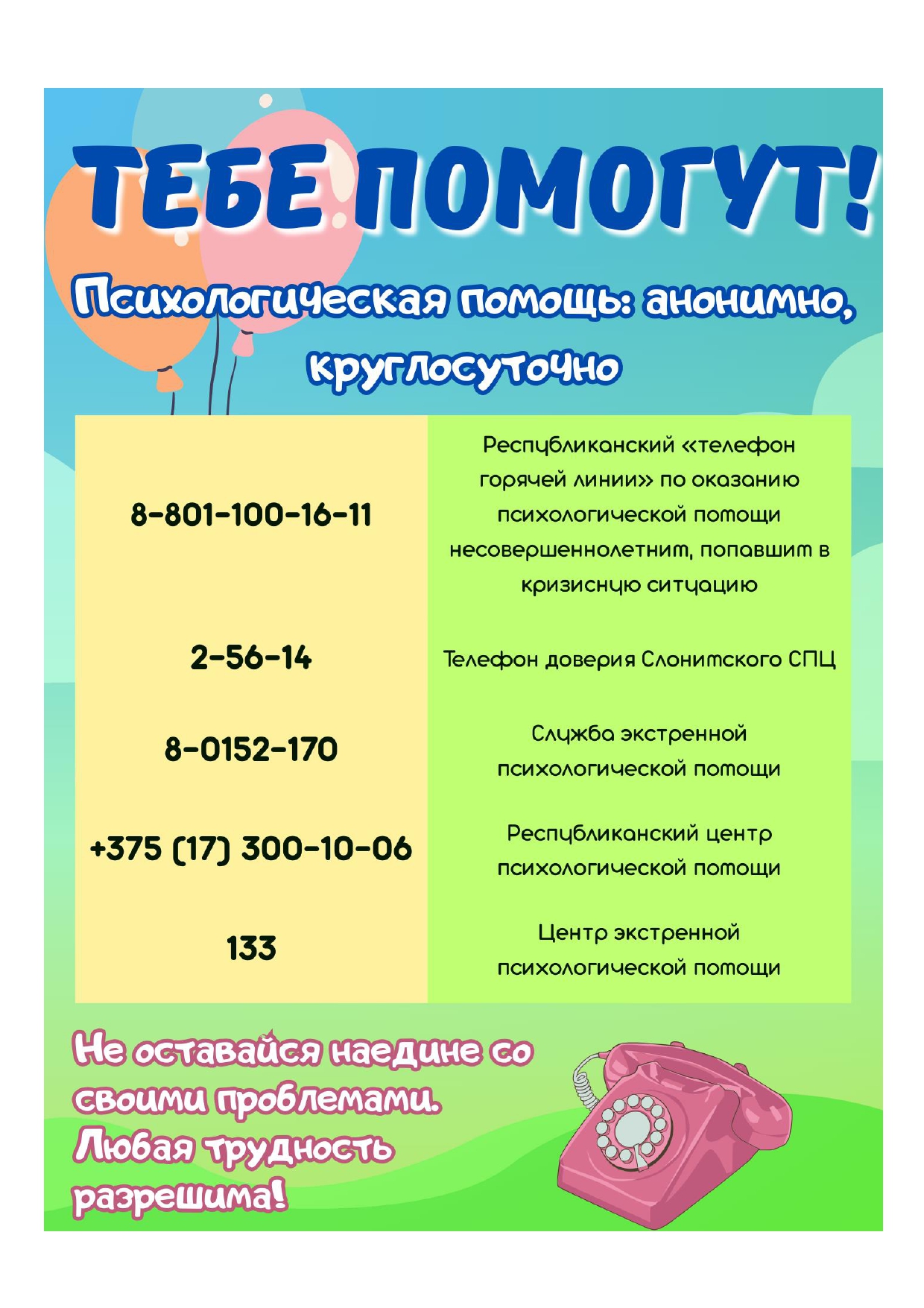 Список учреждений и организаций оказывающих психологическую, психиатрическую и психотерапевтическую помощь в Гродненской области (перейти).