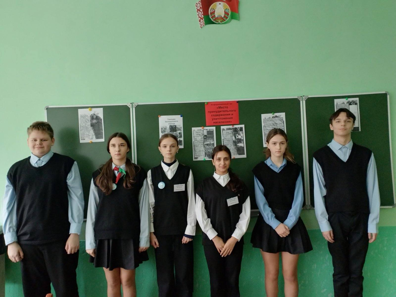 20 ноября 2025 года в 8-9 классах был проведен информационный час на тему "Места принудительного содержания и уничтожения населения". Цель данного мероприятия- расширить сведения, углубить знания детей о лагерях смерти. Мероприятие направлено на сохранение исторической правды о преступлениях нацистов и их пособников в отношении белорусского народа в годы Великой Отечественной войны, а также направлено на воспитание уважительного отношения к жертвам войны и формирование у молодого поколения чувства ответственности за будущее своей страны. В ходе мероприятия учащиеся познакомились с материалами о геноциде. Учащиеся 9 класса Панфилович Александра и Брайчук Мария познакомили ребят с информацией о лагерях смерти "Тростянец" и "Хатынь". Далее ребята ознакомились с материалами учебного пособия "Геноцид белорусского народа в годы Великой Отечественной войны". Материалы пособия позволили учащимся глубже понять трагедию белорусского народа. Ребята просмотрели документальный фильм о лагерях смерти, которые были на белорусской земле. Фильм помог ребятам глубже осознать масштабы трагедии белорусского народа, знать правду о преступлениях нацистов и их пособников в отношении белорусского народа в годы Великой Отечественной войны. В конце мероприятия ребята пришли к выводу, что нельзя допускать повторения ужасов войны и геноцида, а нужно беречь и сохранять мир, который достался нам в наследство.