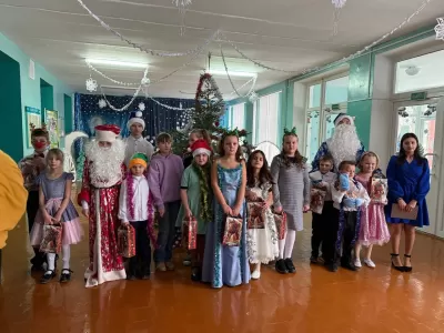 На утренник заглянул Дед Мороз со Снегурочкой. Они провели весёлые конкурсы, загадали загадки и подарили детям сладкие подарки.